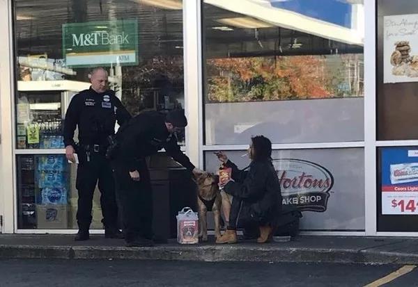 兩名警察看到后特意為他們買了食物